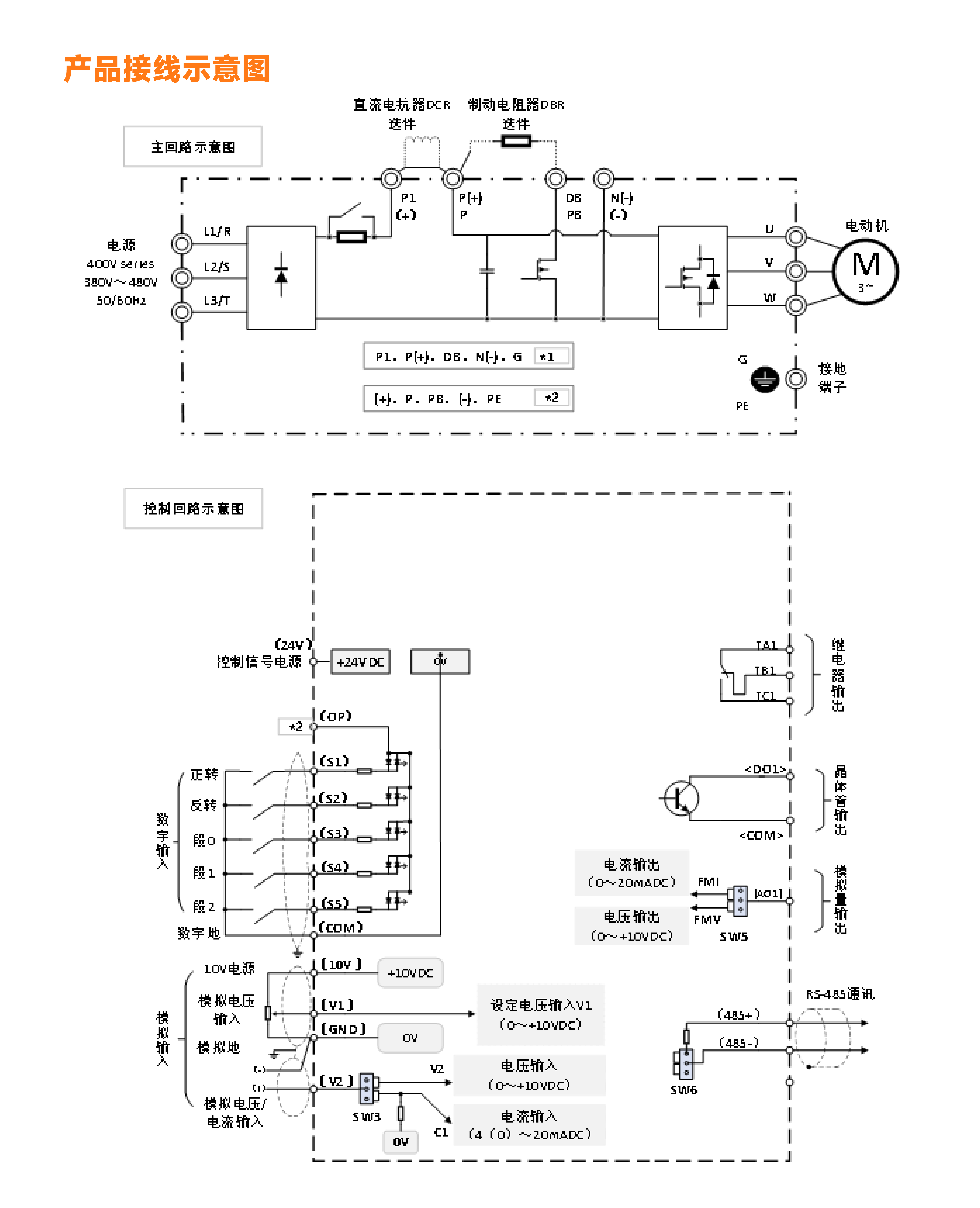 5.5KW及以下功率配有外接直流電抗器接線端子,滿足更高要求場合